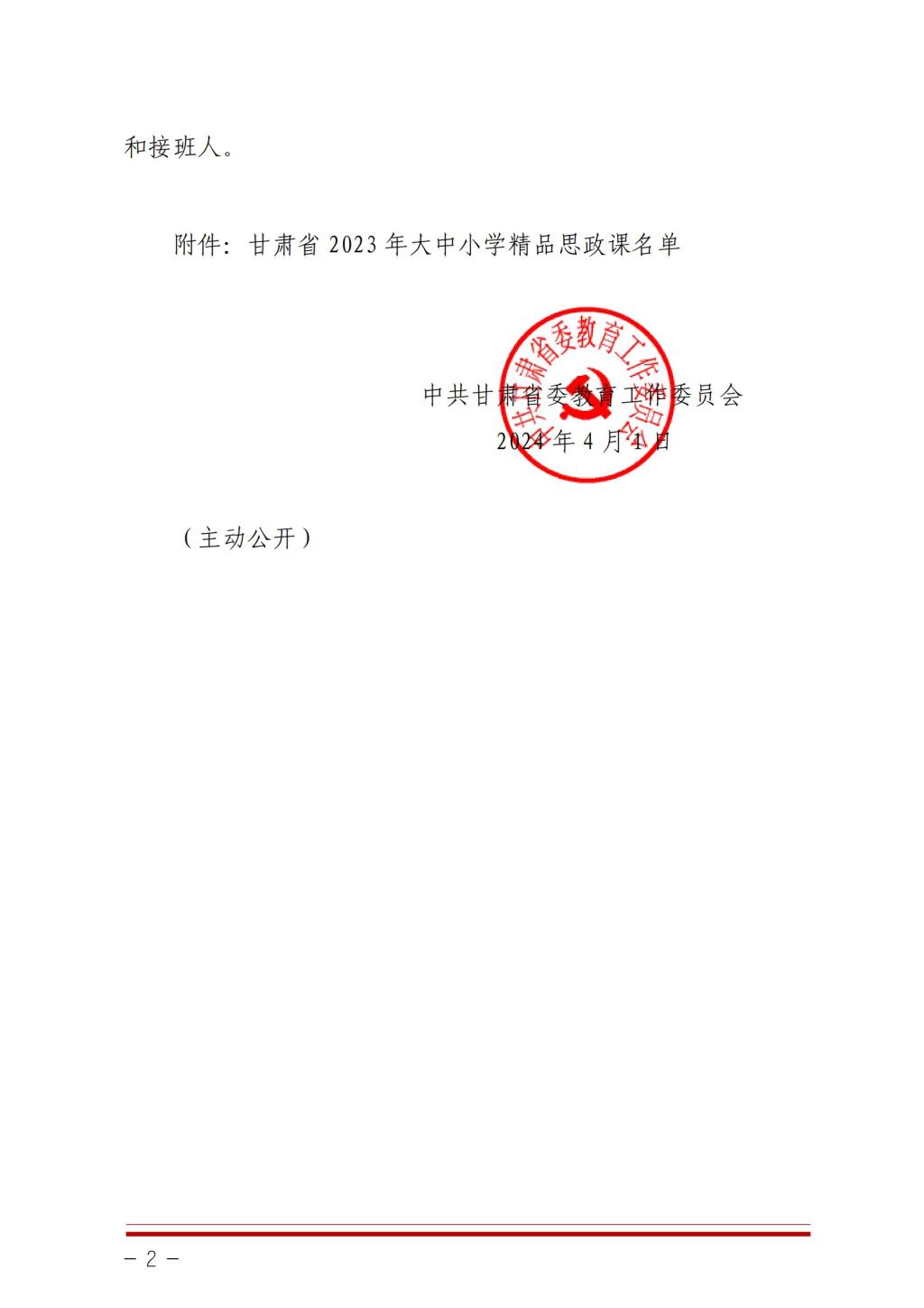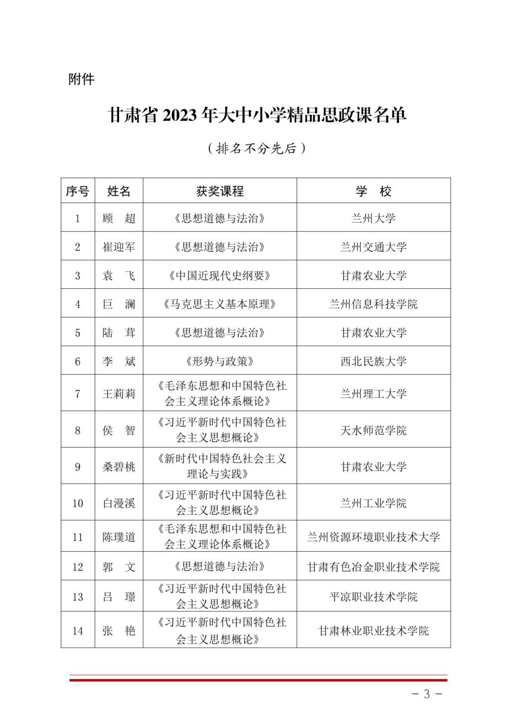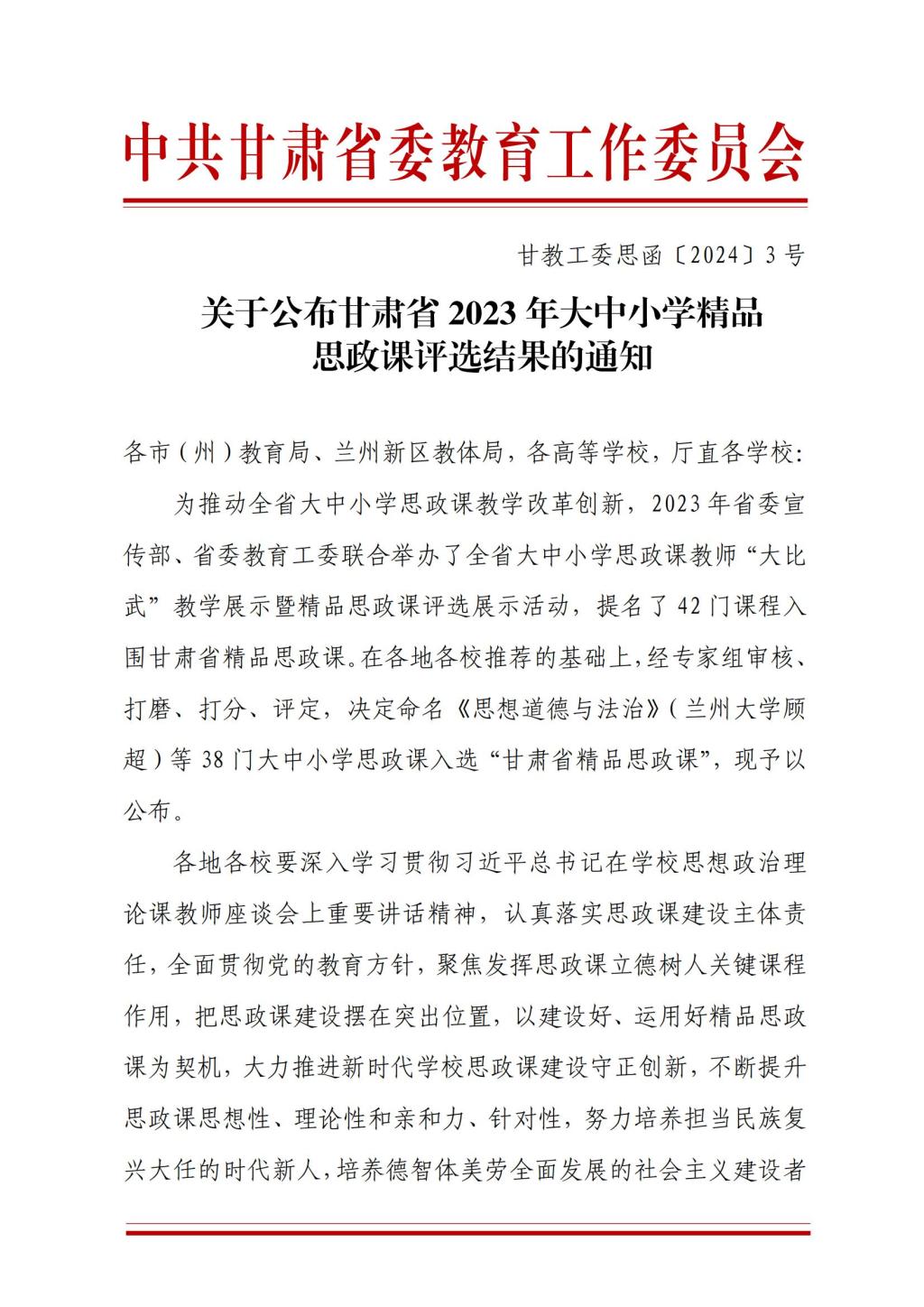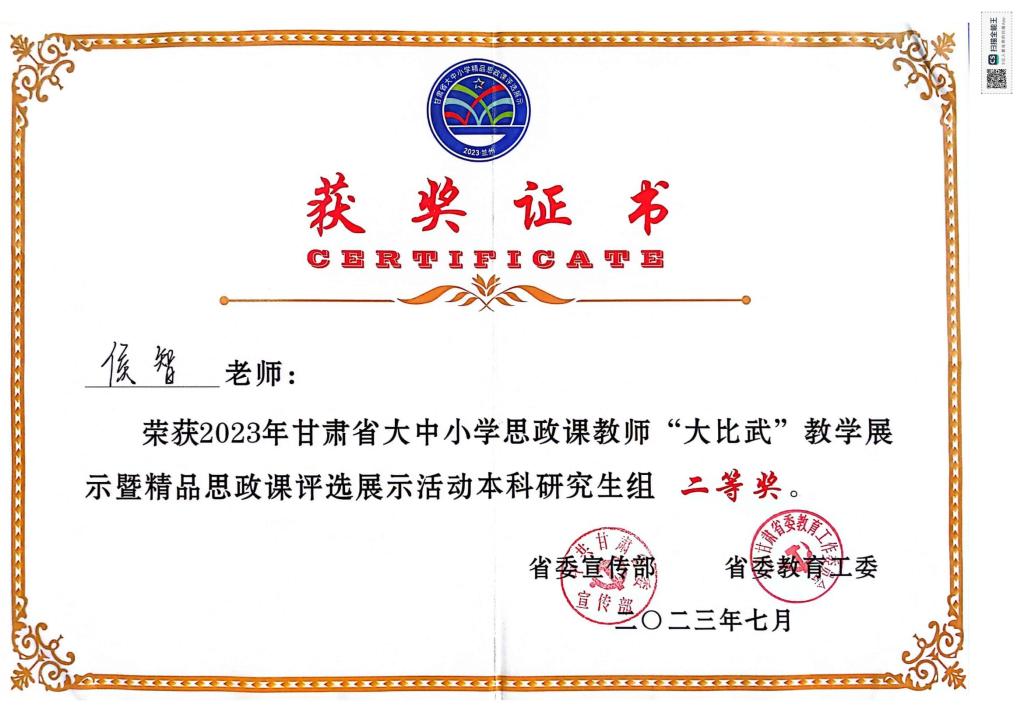 yl23411永利集团官网教师侯智在甘肃省2023年大中小学精品思政课评选中获奖